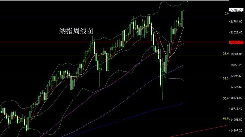 纳指市场上周低开在21398.21的位置后行情小幅回踩给出21385.91的位置后行情强势拉升周线最高触及到了22603.91的位置后行情整理,周线最终收线在了22514.76的位置后,轴线以一个上影线稍长的大阳线收线,而这样的形态收尾后,本周22450多止损22380,目标看22600和22700和22800.