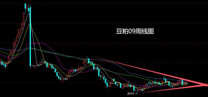 豆粕09市场上周开盘在2955的位置后行情先回落,周线最低给到了2925的位置后行情尾盘拉升,周线最高触及到了2987的位置后行情整理,周线最终收线在了2975的位置后行情以一根下影线很长的锤头形态收线,而这样的形态收尾后,本周2960多止损2940,目标看2990和3035和3075.