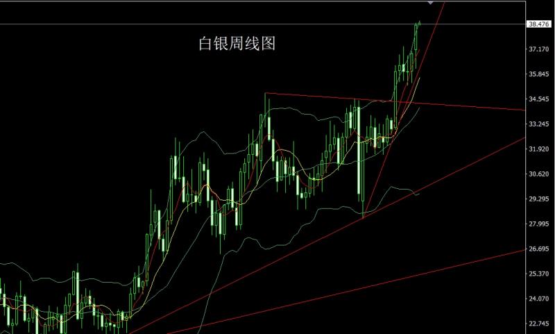 白银市场上周高开在37.154的位置后行情强势回落,周线最低给到了36.12的位置后行情强势拉升,到周五破位颈线压力后周线最高触及到了38.516的位置后行情整理,周线最终收线在了38.418的位置后行情以一根下影线极长的大阳线收线,而这样的形态收尾后,本周行情继续看多,点位上,今日37.8多止损37.6,目标看38.5和39和39.3和39.5.