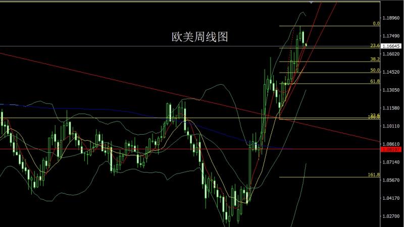欧美市场上周小幅高开在1.17822的位置后行情小幅拉升给出1.17901的位置后行情强势回落,轴线最低给到了1.16616的位置后行情整理,周线最终收线在了1.16919的位置后,周线以一根下影线很长的大阴线收线,而这样的形态收尾后,周线阴包阳回落压力信号,点位上,早盘先回落1.16550多止损1.16400,目标看1.16850和1.17200和1.17450.