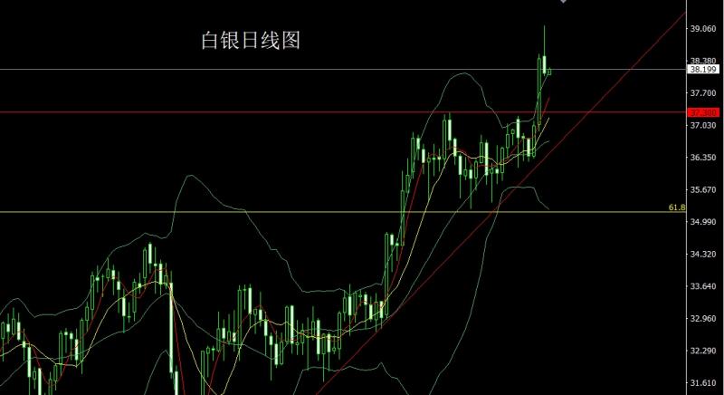 白银市场昨日开盘在38.479的位置后行情先拉升给出39.122的日线高点后行情强势回落,日线最低给到了38.06的位置后行情整理,日线最终收线在了38.109的位置后行情以一根上影线极长的中阴线收线,而这样的形态收尾后,日线冲高回落信号,点位上,今日38.55空止损38.75,目标看俺38.05,跌破看37.8和37.6.