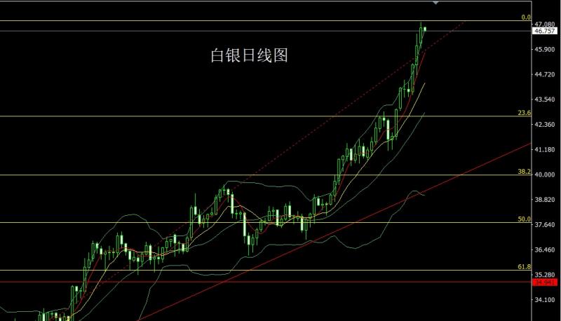 白银市场昨日开盘在46.168的位置后行情先回落给出45.915的位置后行情强势拉升,日线最高触及到了47.187的位置后行情整理,日线最终收线在了46.903的位置后,日线以一根上下影线等长的中阳线收线, 而这样的形态收尾后,下方37.8的多和上周五38.8的多减仓后止损跟进在42持有。上周五44.6的多减仓后止损跟进在44.8持有,今日46.2多止损46,目标看46.7和46.9和47.2,破位看47.5和48.