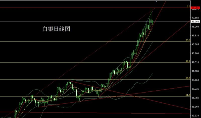 白银市场昨日开盘在48.484的位置后行情先回落给出48.433的位置后行情强势拉升,破位历史高点49.8的位置后行情给出新的高度51.254的位置后行情冲高回落,日线最低给到了48.364的位置后行情整理,日线最终收线在了49.353的位置后,日线以一根上影线极长的倒锤头形态收线,而这样的形态收尾后,今日的行情有继续调整的技术需求,点位上,下方37.8的多和38.8的多减仓后止损跟进在44持有。44.6的多减仓后止损跟进在45持有,今日先拉升给出50.2空止损50.5下方目标看48.7和48.3,破位的话看48和47.7-47.5.