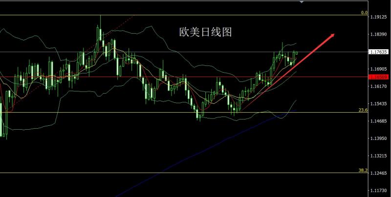 欧美市场昨日开盘在1.17167的位置后行情先回落,日线最低给到了1.17050的位置后行情强势拉升,日线最高触及到了1.17691的位置后整理,日线最终收线在了1.17615的位置后,日线以一根下影线稍长于上影线的大阳线收线,而这样的形态收尾后,今日的行情回踩多,点位上,今日1.17400多止损.17200,目标卡1.17700和1.18000-1.18250
