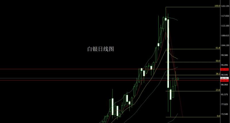 昨日黄金市场宽幅震荡,早盘开盘在4946.2的位置后行情先回落给出4906.4的位置后行情强势拉升,日线最高触及到了5093.4的位置后行情高位整理,美盘时段行情快速回落,日线最低给到了4847.6的位置后行情尾盘强势拉升,日线最终收线在了4965.2的位置后,日线以一根上影线长于下影线的长脚十字星形态收线,而这样的形态收尾后,本周下方4400的多减仓后止损上移放到4500,今日先拉升的话5080空,保守5085空止损5091,目标看5020和5000和4975和4930-4900离场准备多。