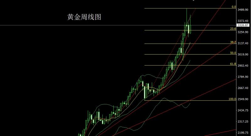 上周黄金市场周初小幅高开在3211.5的位置后行情回补缺口给出3204的位置后行情强势拉升,到周五周线最高触及到了3366.5的位置后行情尾盘回落,周线最终收线在了3359.5的位置后行情以一根下影线稍长的饱和大阳线收线,而这样的形态收尾后,技术反转阳包阴,今日的行情回踩多,点位上,上周3252的破位多减仓后止损跟进在327