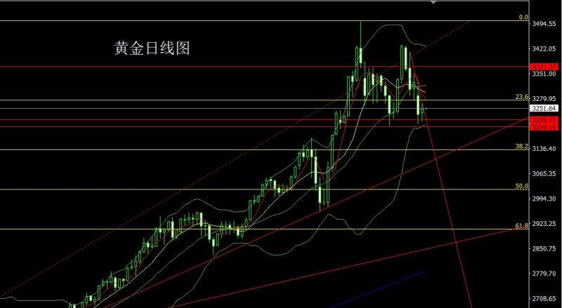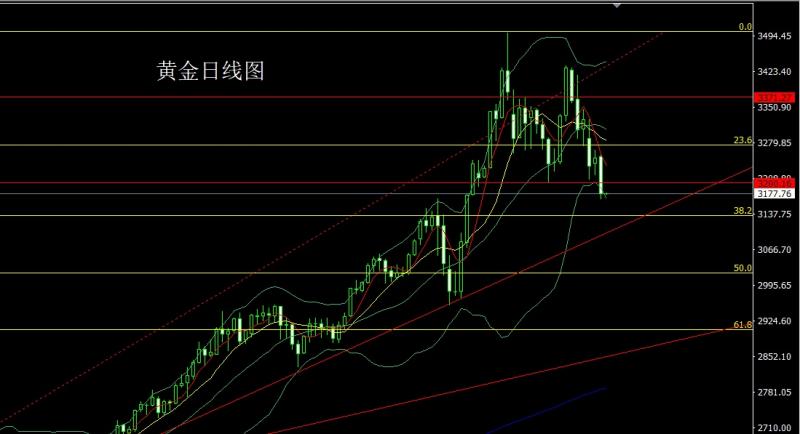 黄金市场昨日开盘在3252.1的位置后行情小幅拉升给出3257.6的位置后行情震荡回落,跌破前日孕线低点3220的位置后行情加速下行,破位3200的日线级别头颈线后行情加速下行,日线最低给到了3167.5的位置后行情整理日线最终收线在了3178.1的位置后行情以一根下影线稍长于上影线的大阴线收线,而这样的形态收尾后,今日的行情