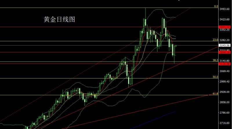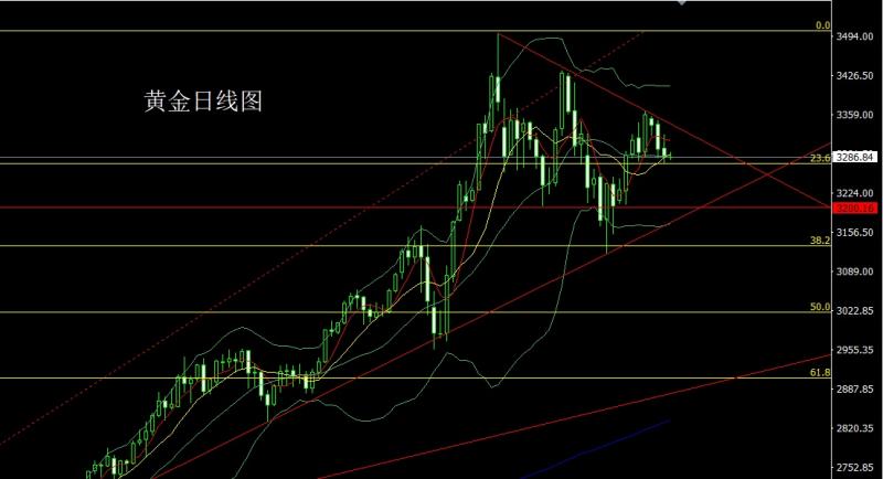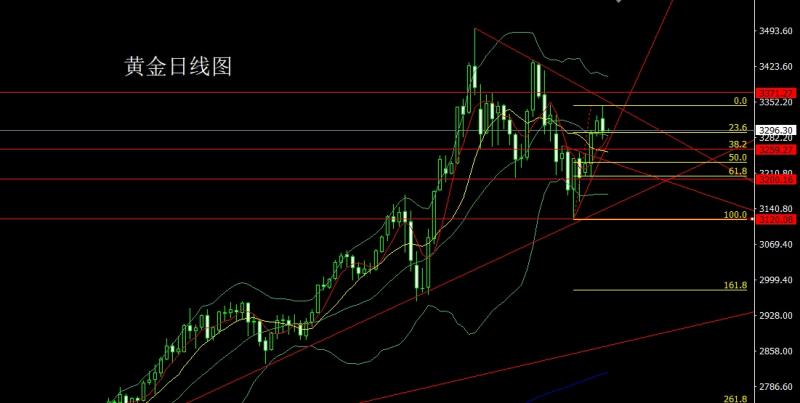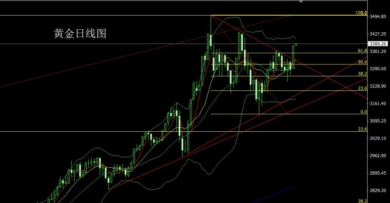 昨日黄金市场早盘小幅低开在3286.7的位置后行情回补缺口给出3295.5的位置后行情延续前一天的倒锤头压力快速回落,日线最低给到了3245的关口支撑后行情强势拉升,日线最高触及到了3331.3的位置后行情受到本轮下行压力线压力整理,日线最终收线在了3317.4的位置后行情以一根下影线极长的中阳线收线,而这样的形态收尾后,