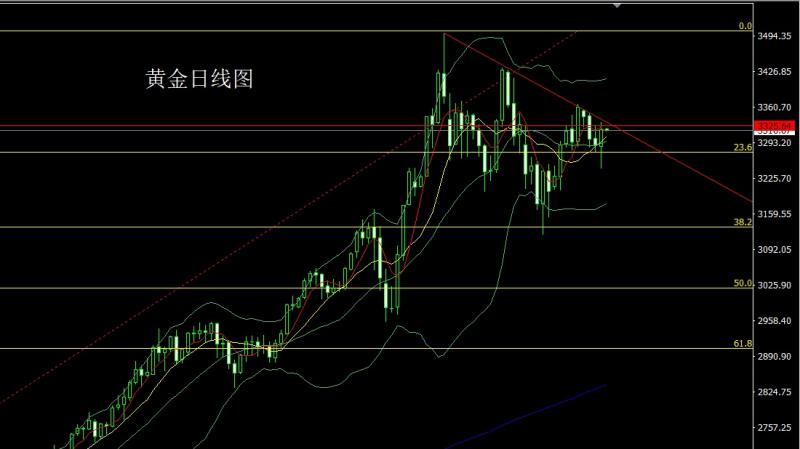 昨日黄金市场早盘开盘在3291.4的位置后行情先回落给出3284.5的位置后行情强势震荡拉升,日线最高触及到了3325.1的位置后行情整理,日线最终收线在了3315的位置后,日线以一根上影线稍长于下影线的中阳线收线,而这样的形态收尾后,前日3252的破位多减仓后止损跟进在3270,今日早盘如果先回落3303多保守3301多止损3297,