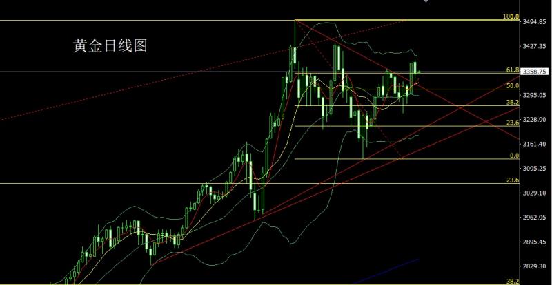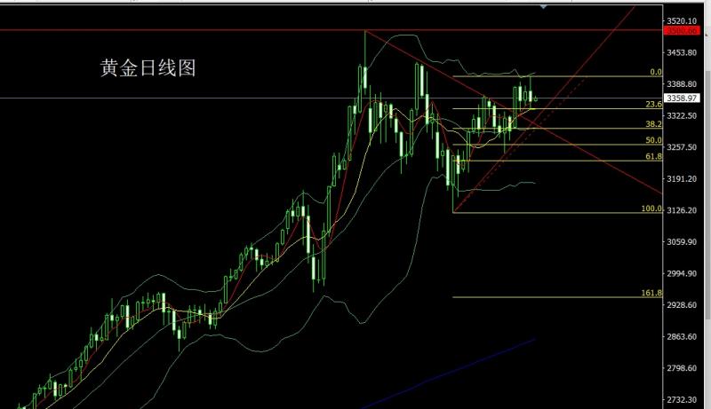 昨日黄金市场早盘开盘在3373.6的位置后行情先拉升给出3384.3的位置后行情回落给出3360.6的位置后行情欧盘时段强势拉升日线最高触及到了3403.5的位置后行情受到日线级别布林上轨压力和中美元首通话的避险消退影响盘中强势回落,日线最低给到了3339.4的位置后行情尾盘拉升,日线最终收线在了3352.7的位置后后行情以一根上