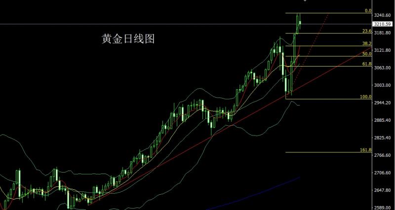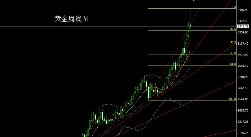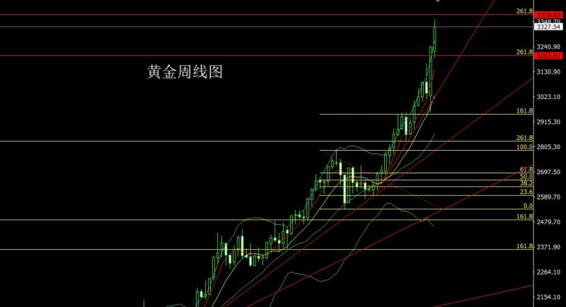 上周黄金市场周初奥夫低开在3027.3的位置后行情回补缺口给出3056.8的位置后行情延续前一周的回落压力下行,周线最低给到了2954.5的位置后行情受到中线级别十日均线和基本面避险情绪支撑强势拉升,破位前一周倒锤头高点3168.1的位置后行情强势快速拉升,周线最高触及到了3245.6的位置后行情整理,周线最终收线在了3238.2