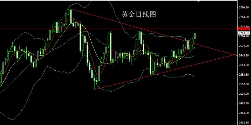 昨日黄金市场延续拉升过程,早盘开盘在2696的位置后行情小幅拉升给出2702.1的位置后行情快速回落,日线最低给到了2689.6的位置后行情强势拉升,日线最高触及到了2724.69的位置后行情整理,日线最终收线在了2714.5的位置后行情以一根上影线稍长于下影线的中阳线收线,而这样的形态收尾后,今日的行情回踩2700依旧多保守26