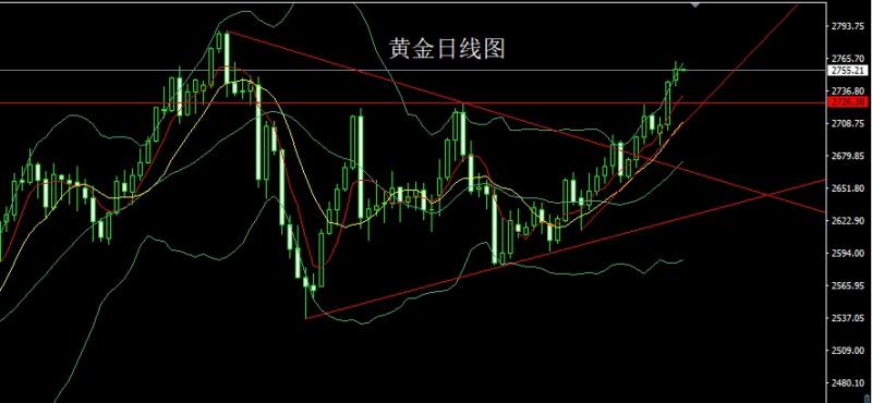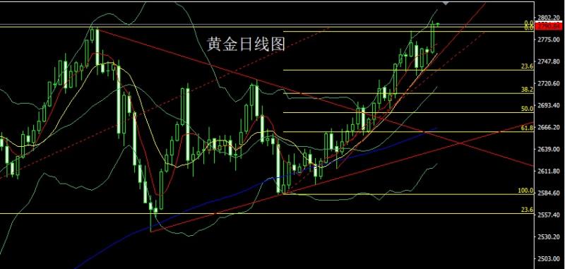 昨日黄金市场又创新高,早盘开盘在2759.5的位置后行情小幅回踩给出2758的位置后行情一路震荡上行,盘中破位前期历史高点2790的位置后行情最高触及到了2798.6的位置后行情整理,日线最终收线在了2794的位置后行情以一根上影线较长的大阳线收线,而这样的形态收尾后,今日的行延续旧多,点位上,今日早盘回踩2790多止损278