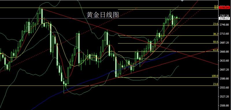 昨日黄金市场大区间震荡,早盘开盘在2763.1的位置后行情先拉登给出2766.4的日线高点后行情一路震荡回落到凌晨时段日线最低给到了2744.6的位置后行情受到本轮上行趋势线和基本面讲话影响强势拉升,日线最终收线在了2759.5的位置后行情以一根下影线极长的锤头形态收线,而这样的形态收尾后,今日的行情回踩还需多,点位上
