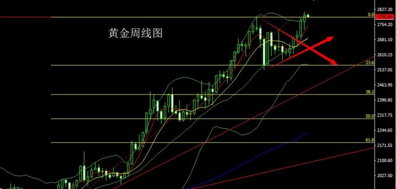 上周黄金市场周初开盘在2767.9的位置后行情先回落,日线最低给到了2730的位置后行情强势拉升,到周五美盘时段周线最高触及到了2817.2的位置后行情尾盘回落,周线最终收线在了2799.2的位置后行情以一根下影线很长的类锤头形态收线,且周线有效上破前期历史高点,而这样的形态收尾后本周市场有继续看多需求,今日如果直接