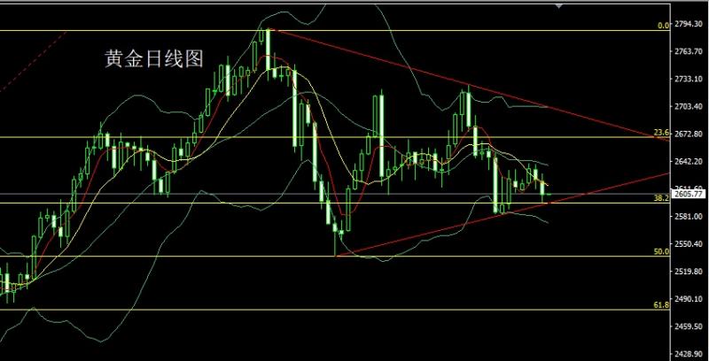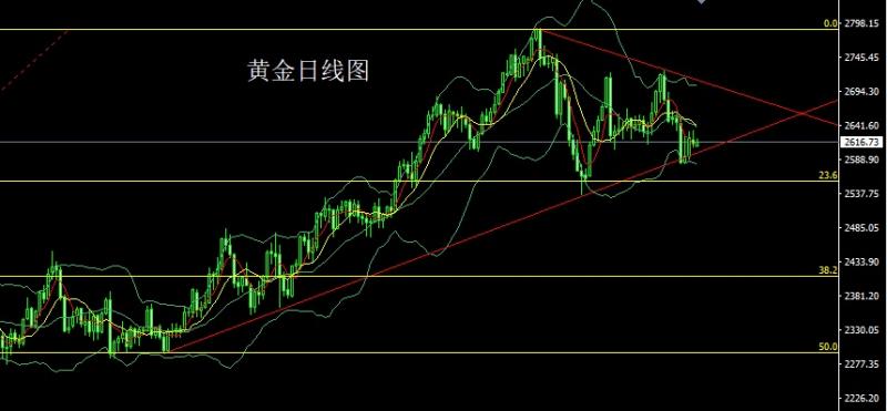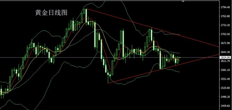 前日行情早盘开盘在2605.4的位置后行情先回落给出2602.5的位置后行情拉升,盘中给出2618附近后行情承压回落,给出2605附近后尾盘时段二次拉升,日线最高触及到了2627.7的位置后行情整理,日线最终收线在了2624.4的位置后行情以一根略带影线的中阳线收线,而这样的形态收尾后,日线在三角区间下轨附近有支撑信号,今日的