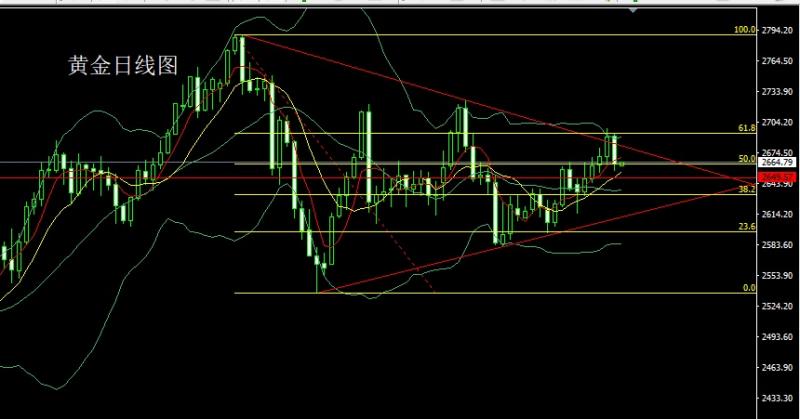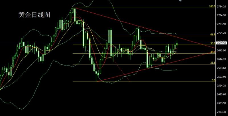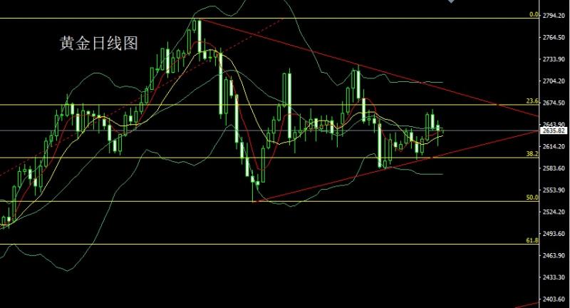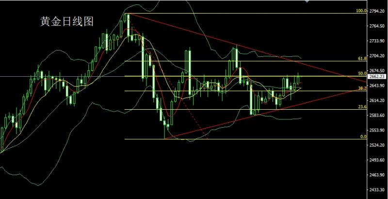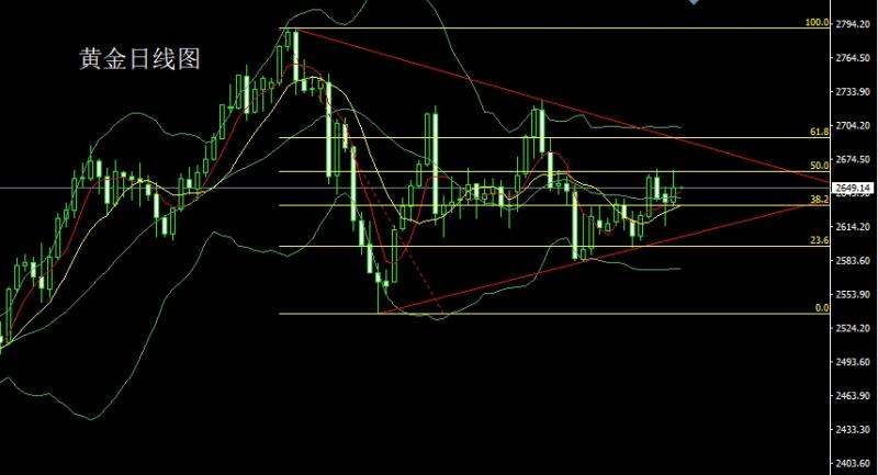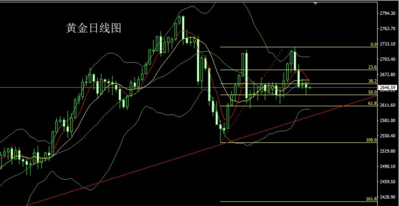 今日飞机晚点,才出海关所以金评简写!还请各位见谅。 昨日黄金市场早盘开盘在2652.6的位置后行情先拉升给出2658.9的位置后行情承压延续回落压力下行,日线最低给到了2632.7的位置后行情受到本轮上行斐波那契的50关口支撑小幅拉升,日线最终收线在了2646.2的位置后行情以一个下影线很长的锤头形态收线,而这样