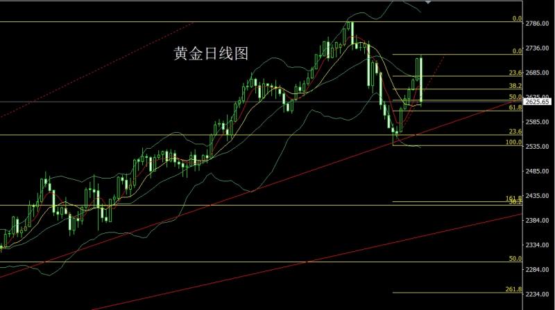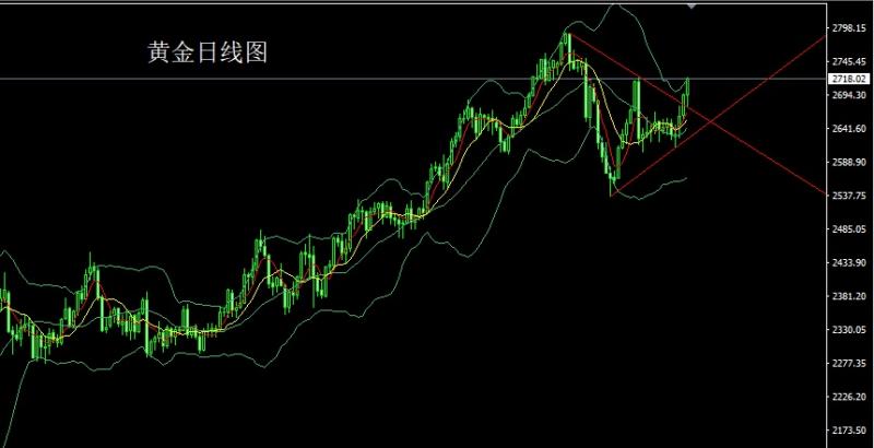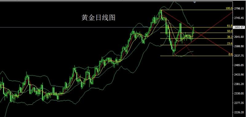昨日黄金市场早盘开盘在2717.9的位置后行情先拉升给出阶段性高点2726.2的位置后行情快速回落,给出2700.3的位置后行情收到支撑强势拉升,给出2720.6的位置后行情受到基本面影响行情逐步回落,美盘时段行情受到基本面避险消退影响行情破位2700整数关口后行情加速下行,日线最低给到了2674.8的位置后行情整理,日线最终收
