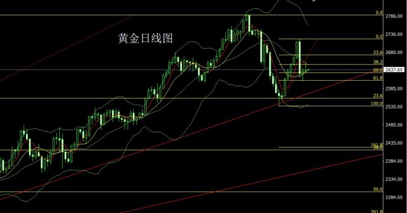 昨日黄金市场延续拉升过程,早盘开盘在2612的位置后行情小幅回踩2609.6的日线低点后行情强势拉升,日线最高触及到了2639.6的位置后行情整理日线最终收线在了2632.2的位置后,日线以一根上影线稍长的中阳线收线,而这样的形态收尾后,日线有效站稳日线十日均线压力上方,今日的行情有继续看多需求,点位上,前日2598的多