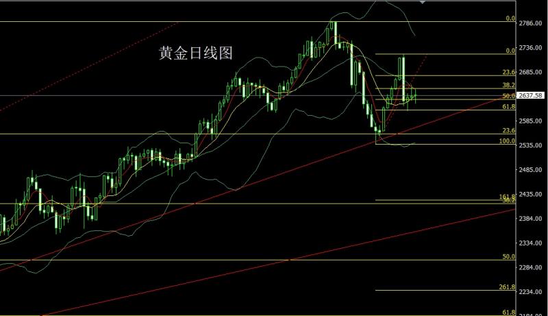 昨日黄金市场区间震荡,早盘开盘在2638.2的位置后行情先回落,日线最低给到了2620.9的位置后行情震荡拉升,日线最高触及到了2649.8的位置后行情尾盘回落,日线最终收线在了2637.6的位置后行情以一根下影线稍长于上影线的长脚十字星形态收线,而这样的形态收尾后,本周2617的多减仓后止损跟进在2620,如果先回落给出2625