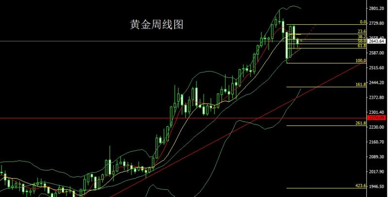 上周黄金市场周初开盘在2652.7的位置后行情直接回落,给出2621的位置后行情拉升,周线最高触及到了2657的位置后行情回落,周五周线最低给到了2613的位置后尾盘拉升,周线最终收线在了2632.6的位置后,周线以一根下影线很长的中阴线收线,而这样的形态收尾后,本周市场高开后行情回踩低多,点位上,今日2625多止损2620,