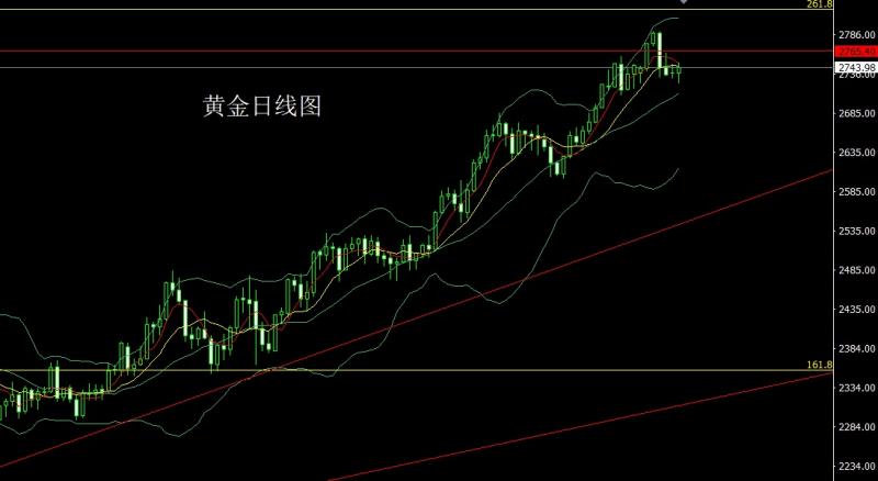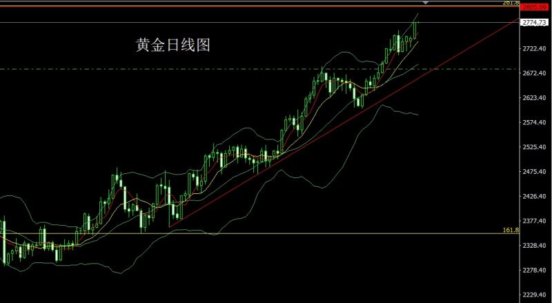 昨日黄金市场强势拉升,早盘开盘在2742.3的位置后行情回踩2739.5的位置后行情强势拉升,给出2758的前期历史高点后行情承压整理给出2745.8的位置后行情在美盘受到基本面刺激强势拉升,破位前期历史高点后最高触及到了2774.9的位置后行情整理,日线最终收线在了2774.5的位置后行情以一根下影线稍长的饱和大阳线收线,而这