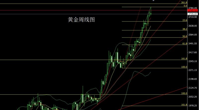 上周黄金市场冲高回落,周初行情开盘在2736.8的位置后行情先回落给出2724.5的周线低点后行情快速拉升,到周四行情二次给出2790.2的历史新高后行情强势回落,周线最终收线在了2735的位置后,周线以一根上影线极长的射击之星形态收线,而这样的形态收尾后,本周市场有回落信号,点位上,下方1996多和2028的多止损跟进在260