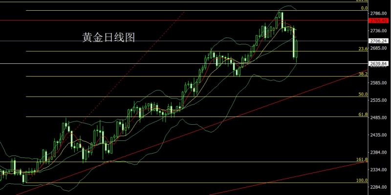 昨日黄金市场早盘开盘在2659的位置后行情先回落给出阶段性低点2642.7的位置后行情释放压力后开始走凌晨降息预期,行情一路震荡拉升,日线最高触及到了2710.5的位置后行情整理,日线最终收线在了2706.2的位置后行情一一根下影线长于上影线的大阳线收线,而这样的形态收尾后,本轮空间性调整初步结束今日的行情回踩低多,