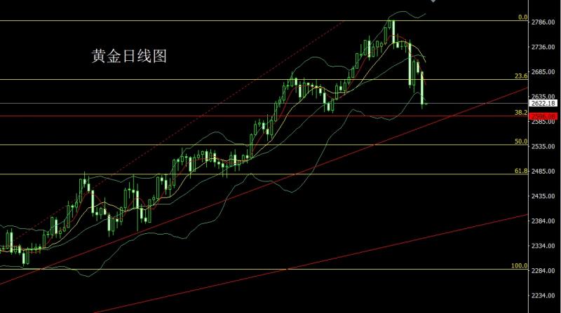 昨日黄金市场早盘开盘在2619.5的位置后行情小幅拉升给出2627.6的位置后行情强势回落,日线最低给到了2588.8的位置后行情拉升,随后区间震荡,日线最终收线在了2598的位置后行情以一根上影线稍长于下影线的中阴线收线,而这样的形态收尾后,今日的行情如果先回落2583多保守2580多止损2576,目标看2605和2612和2620和2630