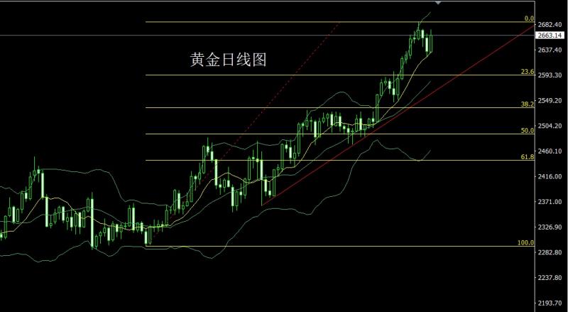 昨日黄金市场早盘开盘在2662.6的位置后行情先回落,日线最低给到了2658.5的位置后行情就开始延续拉升趋势上行,日线最高触及到了2685.6的前期历史高点后行情未能上破承压回落,日线最终收线在了2673.8的位置后,日线以一根上影线很长的中阳线收线,而这样的形态收尾后,下方1996多和2028的多止损跟进在2500,今日早盘如