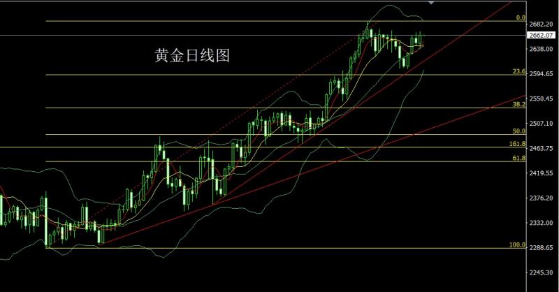 昨日黄金市场早盘开盘在2648.2的位置后行情先反弹给出2653的位置后行情快速回落,日线最低给到了2637.8的位置后行情强势拉升,日线最高触及到了2669的位置后行情整理,日线最终收线在了2662.5的位置后行情以一根下影线稍长于上影线的大阳线收线,而这样的形态收尾后,日线阳包阴,今日的行情有反弹的技术需求,点位上,