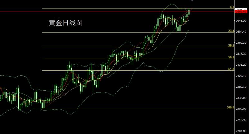 昨日黄金市场早盘开盘在2674.1的位置后行情先回落给出2673.2的位置后行情先拉升给出2688.8的位置后行情受到基本面利空因素影响快速回落,日线二次给出低点2673.2的位置后行情强势拉升,日线最高触及到了2697的历史新高后行情整理,日线最终收线在了2691.7的位置后行情以一根上影线较长的大阳线收线,而这样的形态收尾后