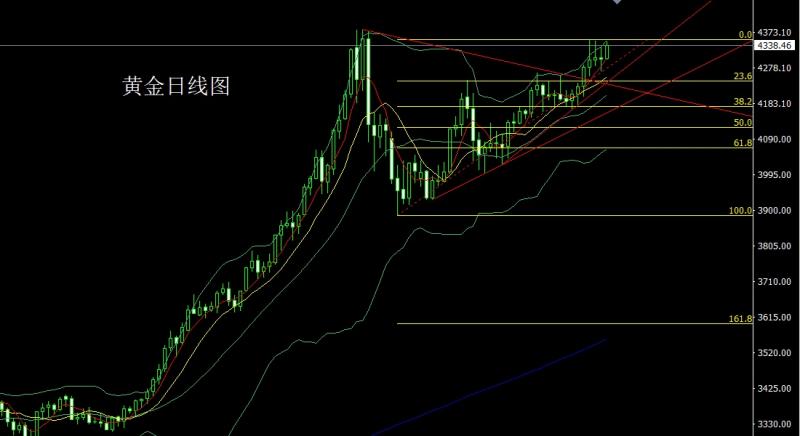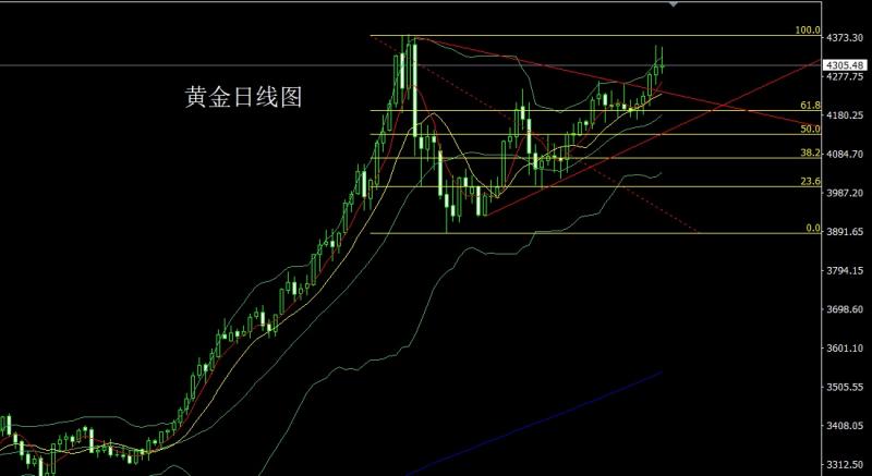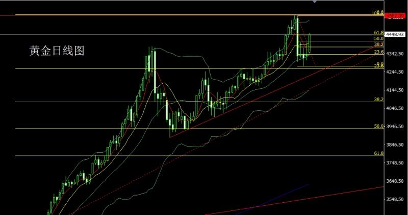 昨日黄金市场早盘小幅高开在4536.5的位置后行情早盘先拉升给出4551.2的历史高点附近后行情出现获利了结过程,盘中跌破多重支撑后行情加速回落,日渐最低给到了日渐级别布林中轨4300.3的位置故意整理,日线最终收线在了4331.4的位置后,日线以一根下影线长于上影线的大阴线收线,而这样的形态收尾后,日线调整基本一步到