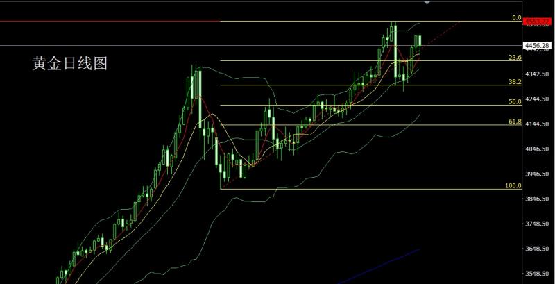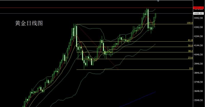 黄金市场昨日延续拉升过程,早盘开盘在4447.9的位置后行情强势拉升给出4498的新高后行情冲回落,美盘时段日线最低给到了4430.2的位置后尾盘二次拉升,日线最高触及到了4500.3的位置后整理,日线最终收线在了4486.6的位置后,日线以一根下影线稍长于上影线的大阳线收线,而这样的形态收尾后,今日的行情回踩多,点位上,