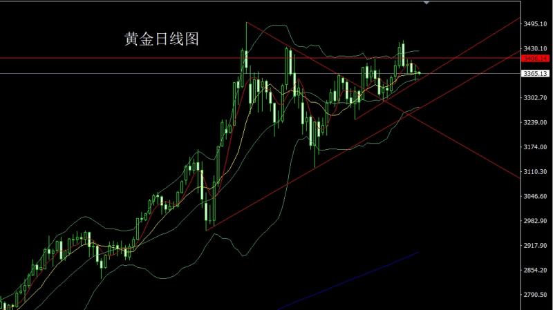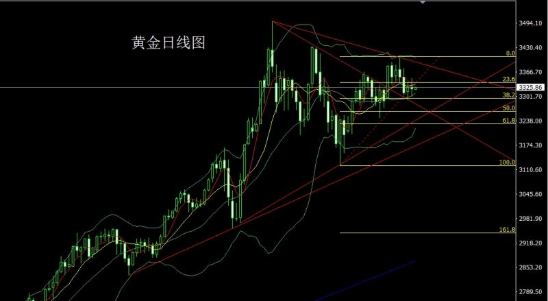 昨日黄金市场早盘开盘在3315.6的位置后行情小幅拉升给出3321的位置后行情快速回落,日线最低给到了3291.4的位置后行情强势震荡拉升,日线最高触及到了3338.4的位置后行情整理,日线最终收线在了3325.5的位置后行情以一根下影线很长的锤头形态收线,而这样的形态收尾后,上周五3373和3375的空减仓后止损跟进在3362.今日先