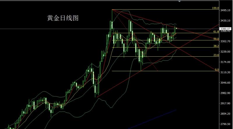 黄金市场昨日开盘在3327的位置后行情直接回落,日线最低给到了3301.5的位置后行情受到日线级别布林中轨支撑和相关商品拉升的影响强势拉升,日线最高触及到了3349.2的位置后行情整理,日线最终收线在了3322.3的位置后行情以一根上下影线等长的长脚阴十字星形态收线而这样的形态收尾后,上周五3373和3375的空减仓后止损跟