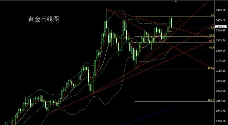 昨日黄金市场早盘高开在3358.4的位置后行情先拉升,给出3377.8的位置后行情快速回落,日线最低给到了3338.1的位置后行情受到基本面和技术支撑强势拉升,日线最高触及到了3398.9的位置后行情整理,日线最终收线在了3386.6的位置后行情以一根下影线稍长于山影线的大阳线收线,而这样的形态收尾后,今日的行情依旧有看多需