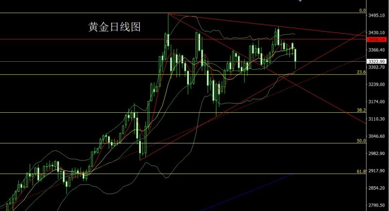 昨日黄金市场早盘开盘在3359.4的位置后行情先拉升给出3365.6的位置后行情区间震荡,给出3341.4的位置后行情拉升,欧盘时段二次给出3364的位置后美盘时段受到非农影响强势下行,日线最低给到了3310.8的位置后行情区间震荡,日线最终收线在了3325.9的位置后行情以一根下影线稍长于上影线的大阴线收线,而这样的形态收尾后