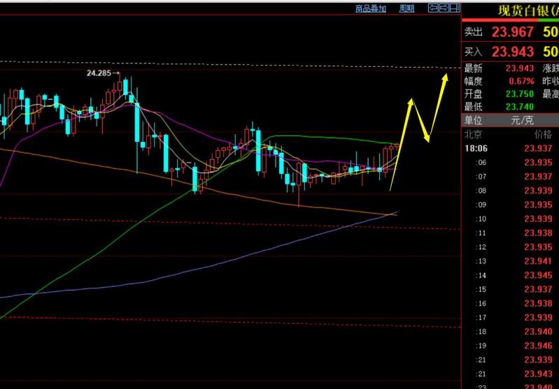 第二,白银方面:23.6上日线5日支撑上同样提前给出看涨思路,也符合拉升;