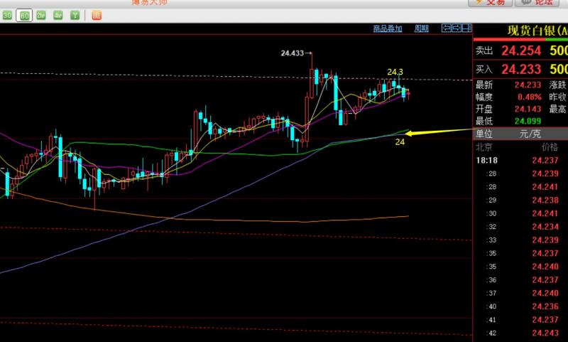 第二,白银方面:昨日向上发力,23.9支撑符合,冲击24.4高度;