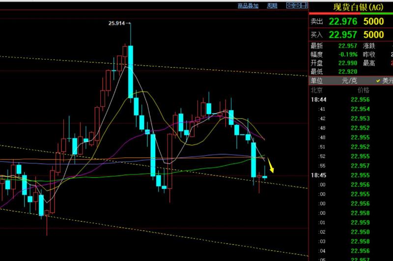 第二,白银方面:23.35下运行也是维持调整向下,运行幅度不大;