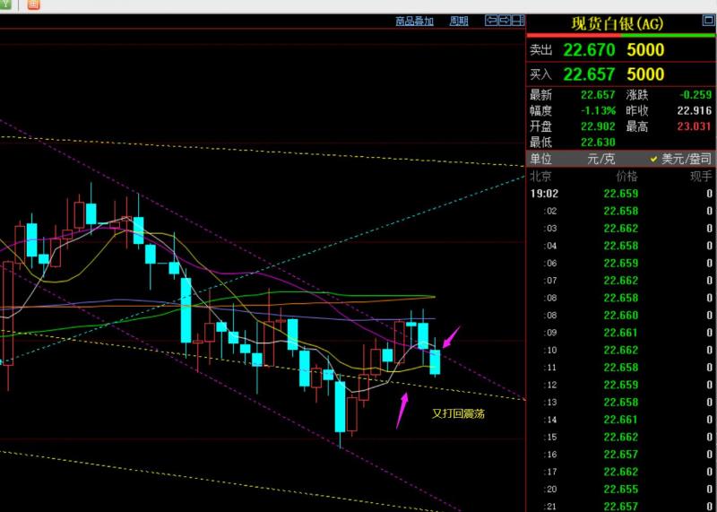 第二,白银方面:22.9-23再度支撑,凌晨前先拉升至23.27,承压23.3下回落,符合震荡;