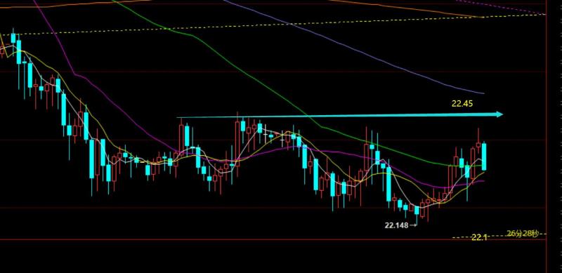 白银方面:它的日内运行区间是22.45-22.1,也是震荡对待,上下破位也可能只是刺破;