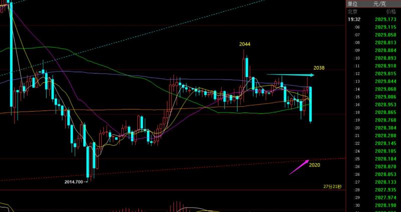 第三 ,黄金小时线级别: 早间从2038承压刺破2030,欧盘企稳又拉升回到2038,然后又冲高回落至2030,小范围走势它也是反复震荡,延续性极差,而往往后半夜的行情会相对大些,搞偷袭;当前阻力2038,若突破站上,往上关注2044和2050;站不上2038,往下关注2023和2020,区间内看震荡为主;