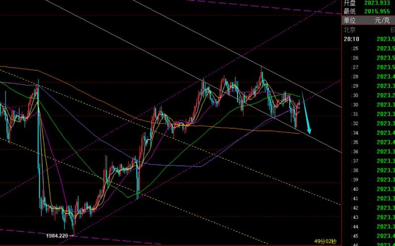 第二,黄金4小时级别:此周期的运行范围,稍扩大至年均线和66日均线之间,或者年均线2030,以及分割支撑2011-12;