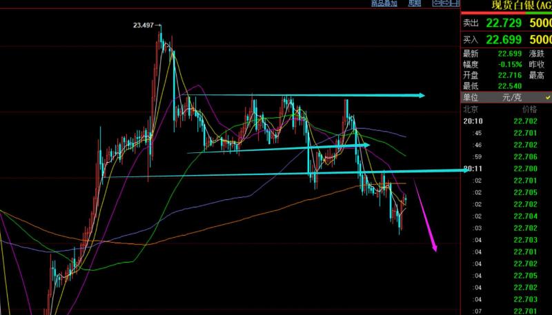 第二,白银方面: 昨日指出23及上方继续看压制,也开始下跌;