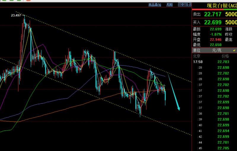 第二,白银方面:这几天的区间还是围绕23.6-21.9之间,通道也是整体下行的,拉高仍容易反复承压;