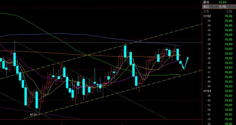 原油方面:日线级别围绕上行通道震荡缓慢上行,短期阴阳循环震荡,上周五收大阴,今日亚欧盘维持隔夜的慢跌下行,暂时处于弱势,但macd又处于底背离,不好追跌;建议关注小时线中轨位置得失,若突破站上它,则可以尝试看一波反弹;反之,就多观望。只有反弹一波了,才有勇气高位看跌,77.4附近阻力;