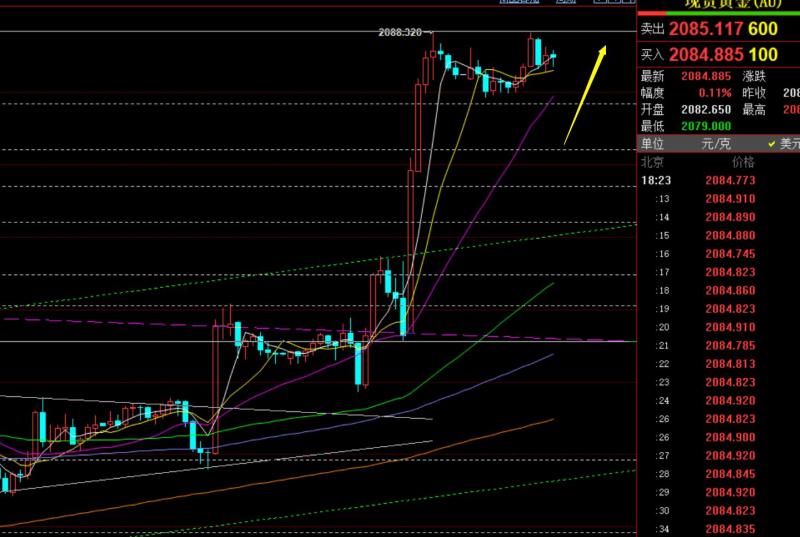 第一,黄金周线级别:周线大阳出现,中期要向上走一波,可惜前两周没有再回踩确认中轨布局波段看涨的机会;目前2067分割位置已初步站上,会成为中期一定支撑;