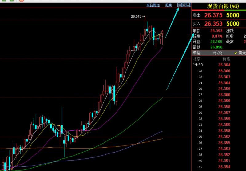 第二,白银方面:昨日延续单边拉升,从25支撑一路涨至26,日线收报大阳,形态还是不错的;